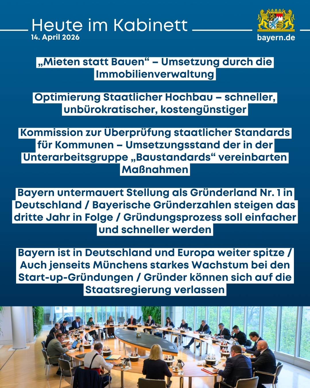 👉 Heute in der Sitzung des Kabinetts unter der Leitung von Ministerpräsident Dr. Markus Söder:
